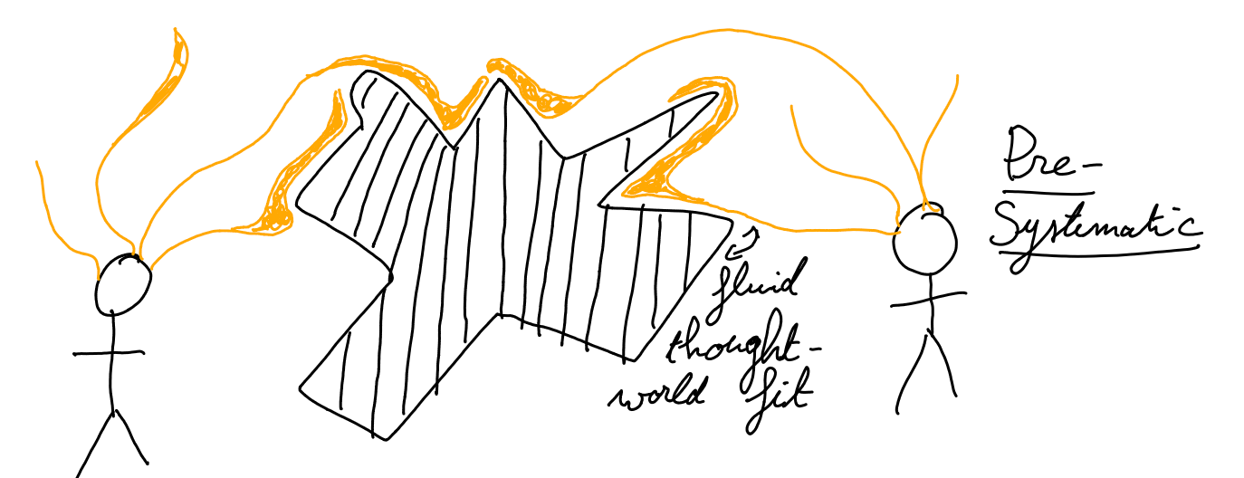Pre-systematic thoughts are fluid and include verbal and non-verbal modalities. They can bend and wrap around the real-world objects they encounter. The conceptual and physical artefacts it produces are wiggly; they cannot easily interface with one another.